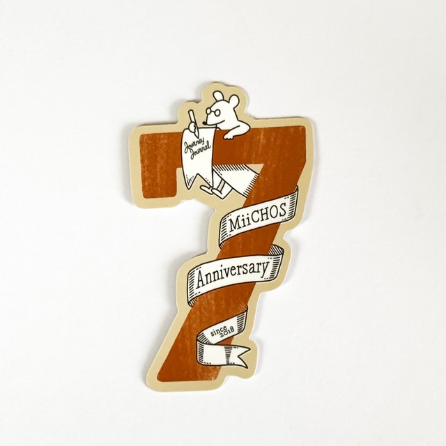 ※ 2026年3月25日 20:00ごろ販売開始予定 7周年を記念して制作したステッカーです。 スタンプで押したような数字に、 リボンとMiiCHOSのアイコンを組み合わせたデザイン。 表面に加工を施しており、手触りのよい紙質。 紙ものにもなじみやすく、コラージュやデコレーションにもおすすめです。 内容:ステッカー、台紙 素材:紙 ステッカーサイズ:H91×W55 mm 台紙サイズ:H135×W90 mm(PP袋入) ※おおよそのサイズです。 --- A special sticker created to celebrate the 7th anniversary. The design features a stamp-like number combined with a ribbon and the MiiCHOS icon. Finished with a smooth surface and pleasant paper texture. It blends naturally with paper and is perfect for collage and decoration. Product: Sticker, Backing Card Material: Paper Sticker size: H91 x W55 mm Backing card size: H135 x W90 mm (in PP bag) MADE IN JAPAN